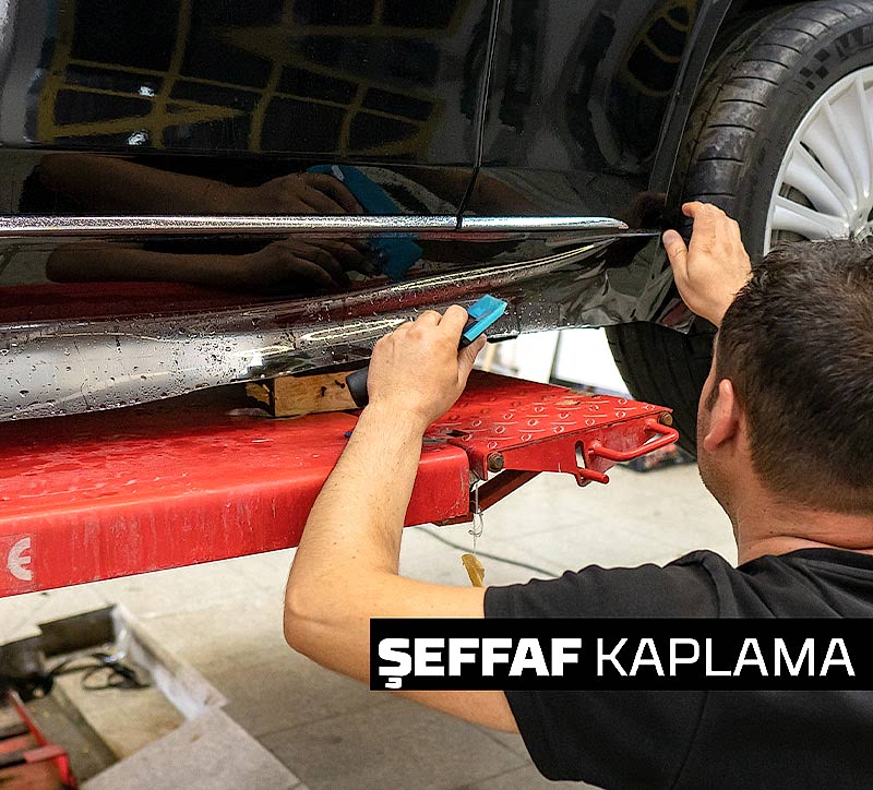 Şeffaf Kaplama; aracınızda oluşabilecek çizik oluşumu, taş ve dolu hasarı, moloz tarzı cisimlere karşı koruma amacıyla kaput, kaporta, kapı kenarları, yan aynalar, çamurluklar vb alanlara uygulanır. Ve aracınız hatasız bir görünüm elde eder.